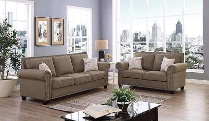 Amazon Com Lilola Caledonia Tan Linen Sofa And Loveseat